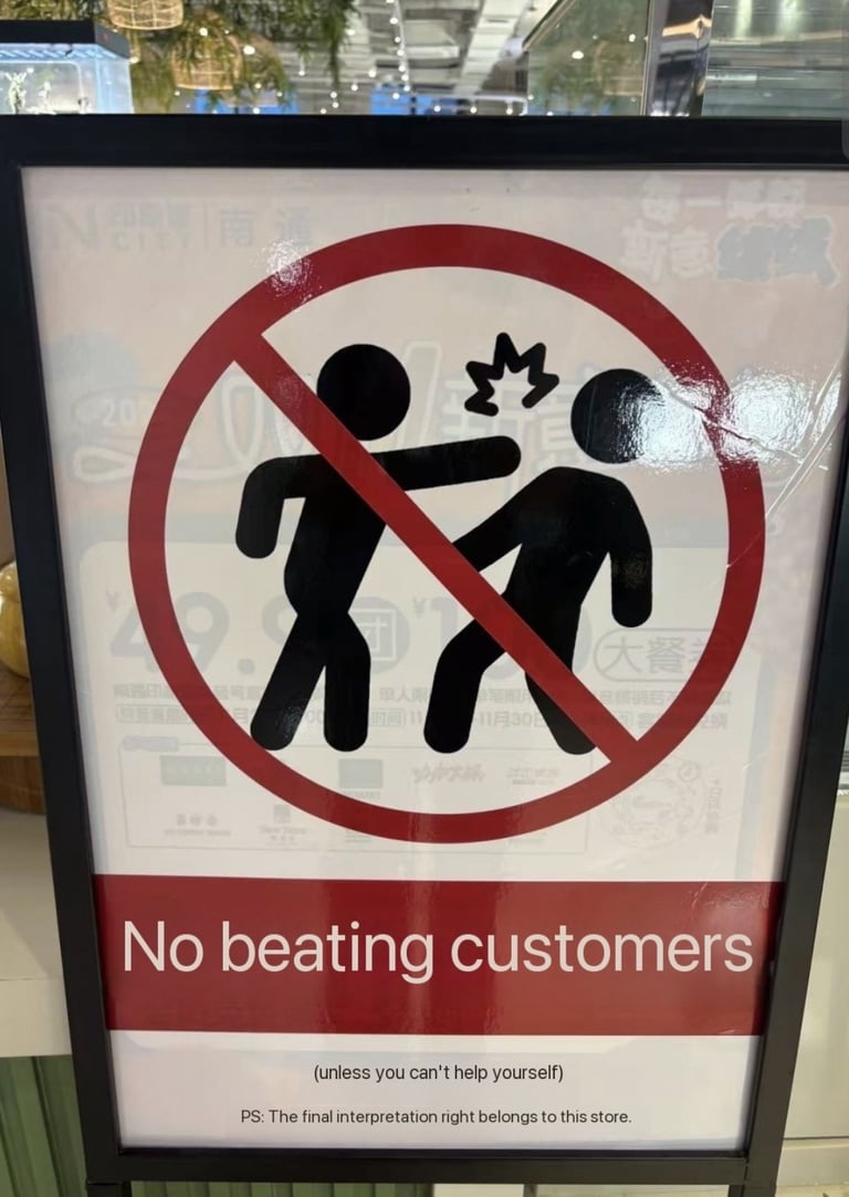 I explore the humor in poorly translated signs from China, capturing their essence in my writing.